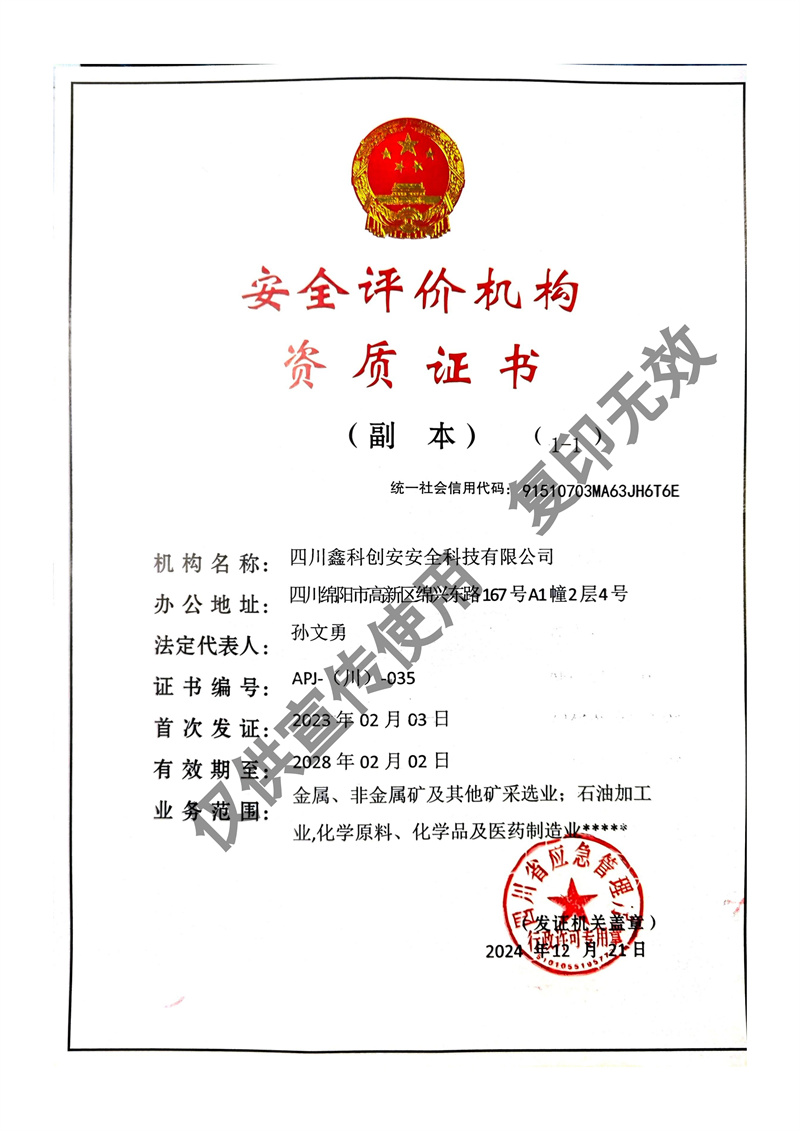 四川鑫科創(chuàng)安安全科技有限公司成立于2020年,是川北地區(qū)取得資質(zhì)的民營安全評價機(jī)構(gòu)(資質(zhì)證書編號:APJ-(川)-035)。并于2022年?duì)款^成立綜合應(yīng)急救援隊(duì)伍 - 綿陽曙光應(yīng)急救援中心。